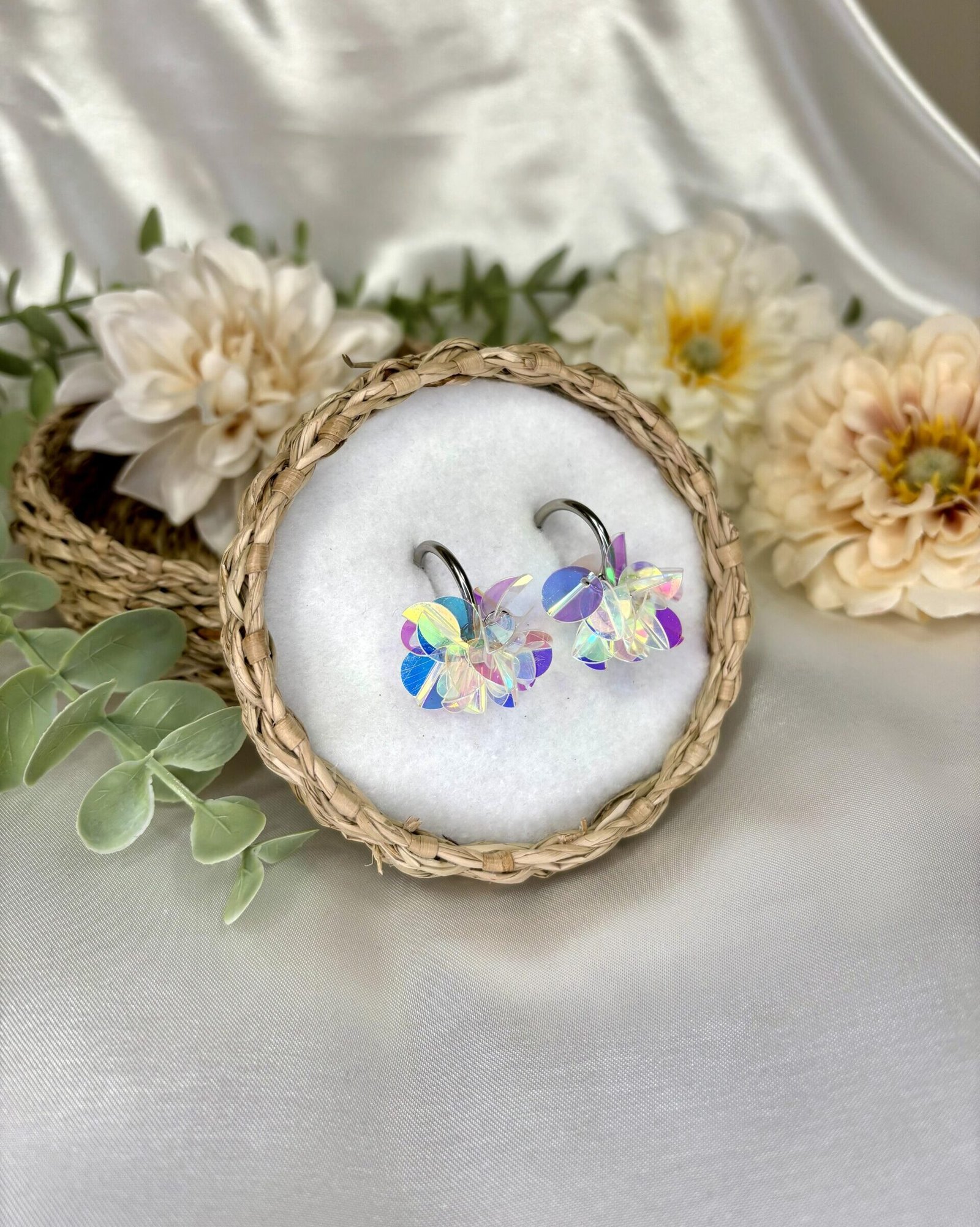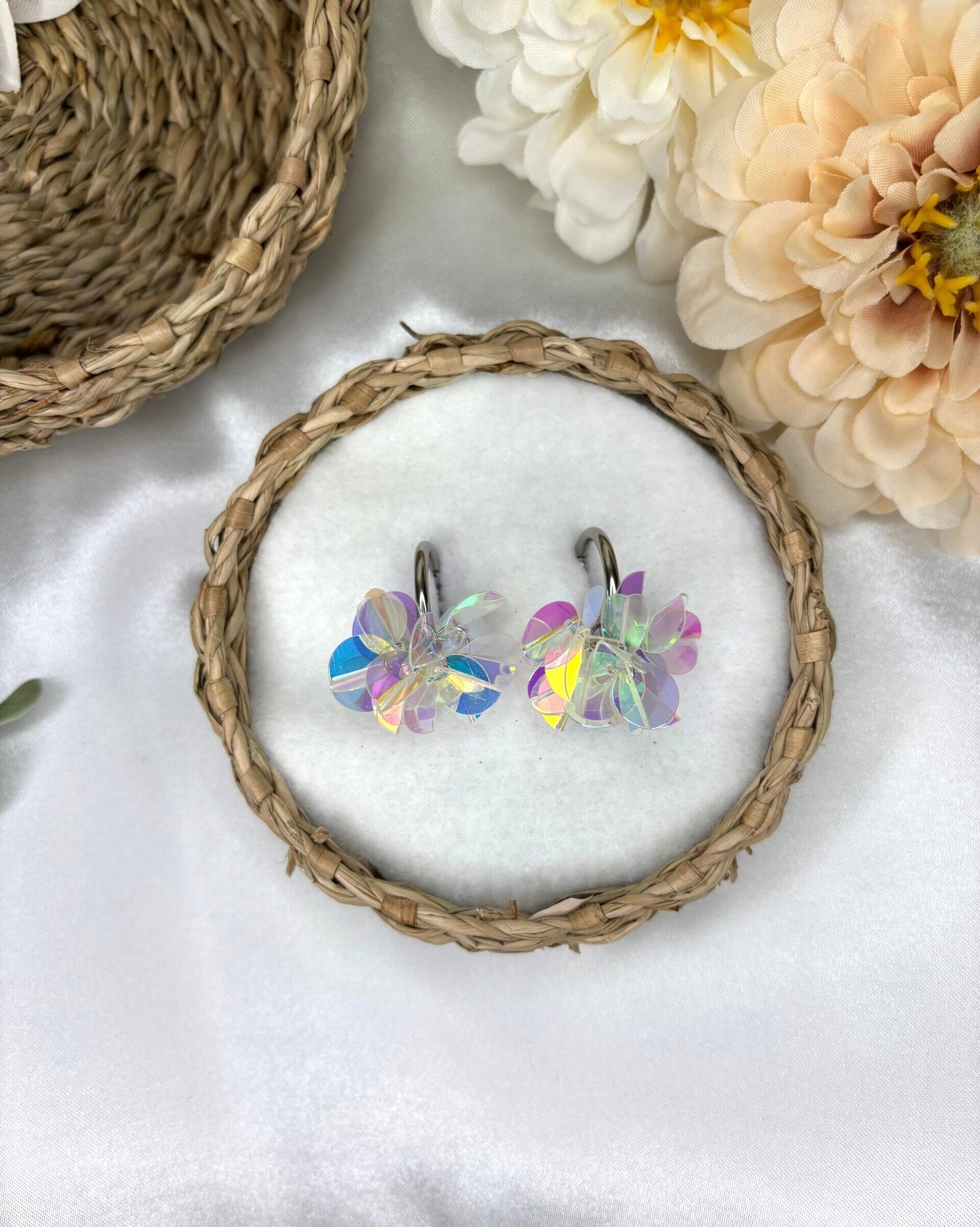 Kevyt ja pirskahteleva PomPom-korvakoru on nappivalinta asuun kuin asuun! Paljeteista käsin koottu koru hehkuu valoa jokaisella liikkeellä. Korvakorut ovat hämmästyttävän kevyet ja niin mukavat, että unohdat niiden olevan korvissasi.